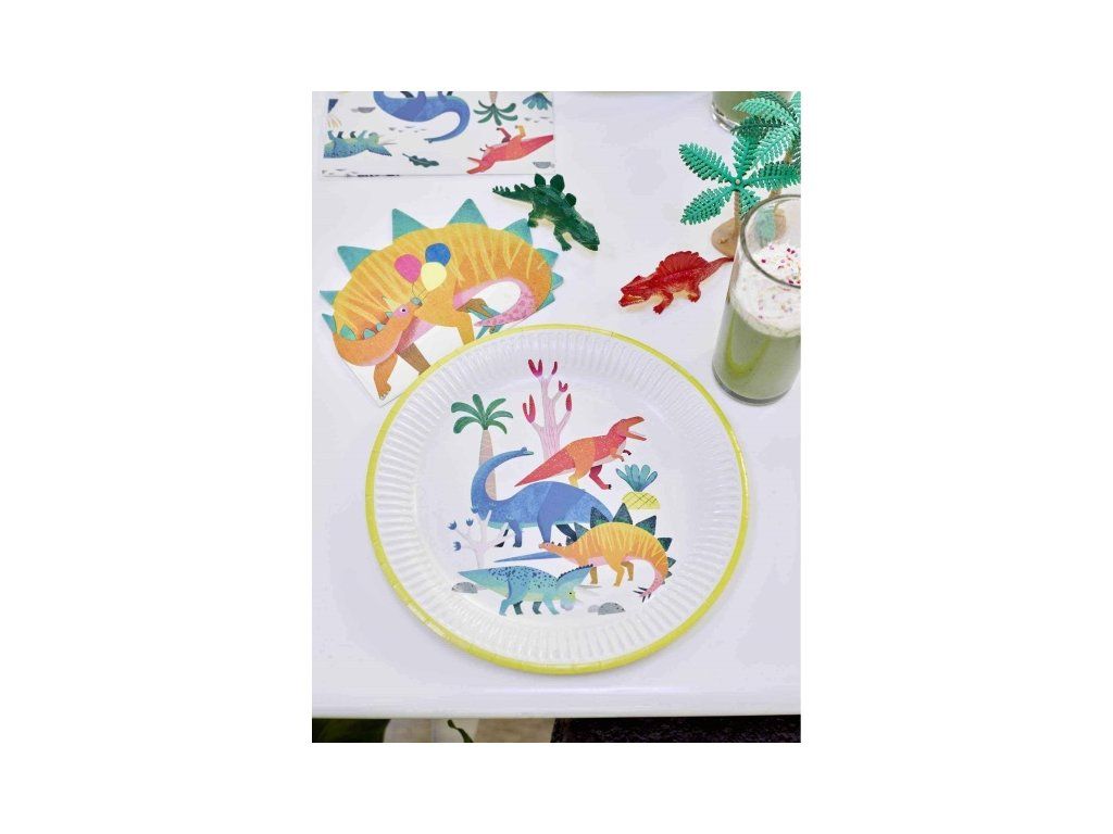Na dětské párty s Dinosaury nesmí v žádném případě chybět tyto kouzelné barevné papírové talíře s motivem dinosaurů o velikosti 23 cm.