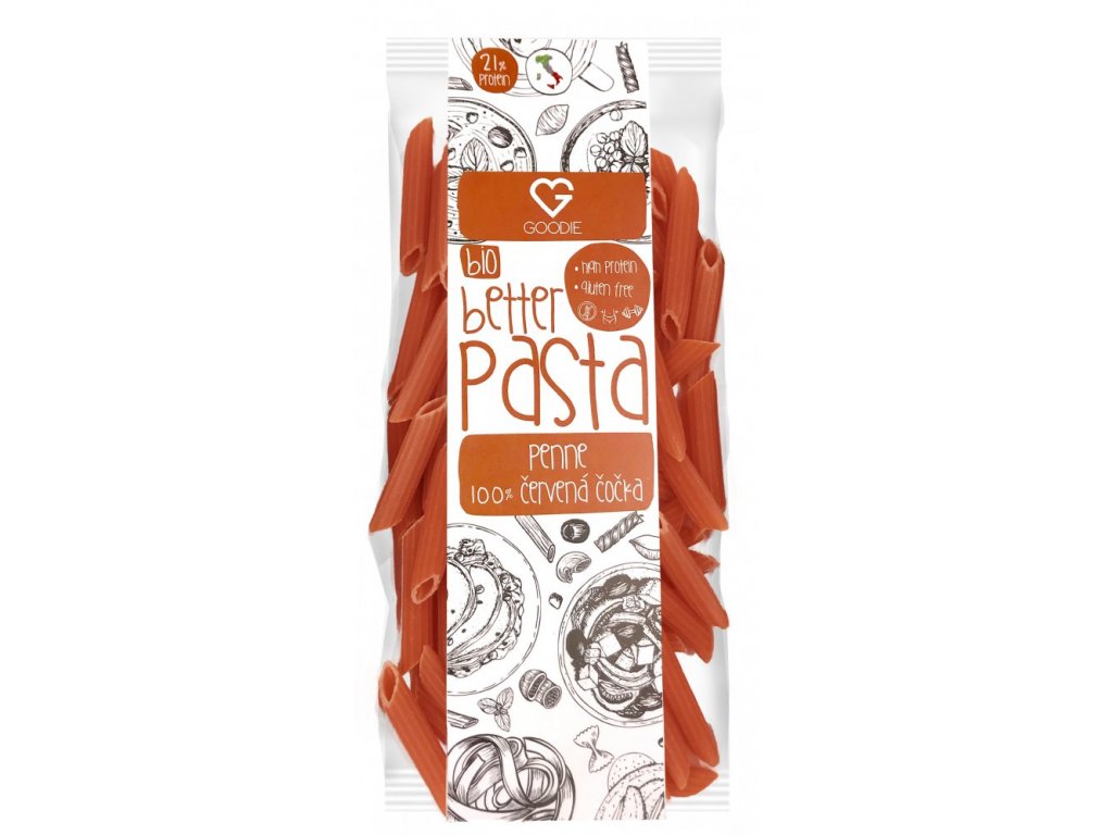 GOODIE Těstoviny proteinové - 100% Červená čočka - Penne BIO 250 g
