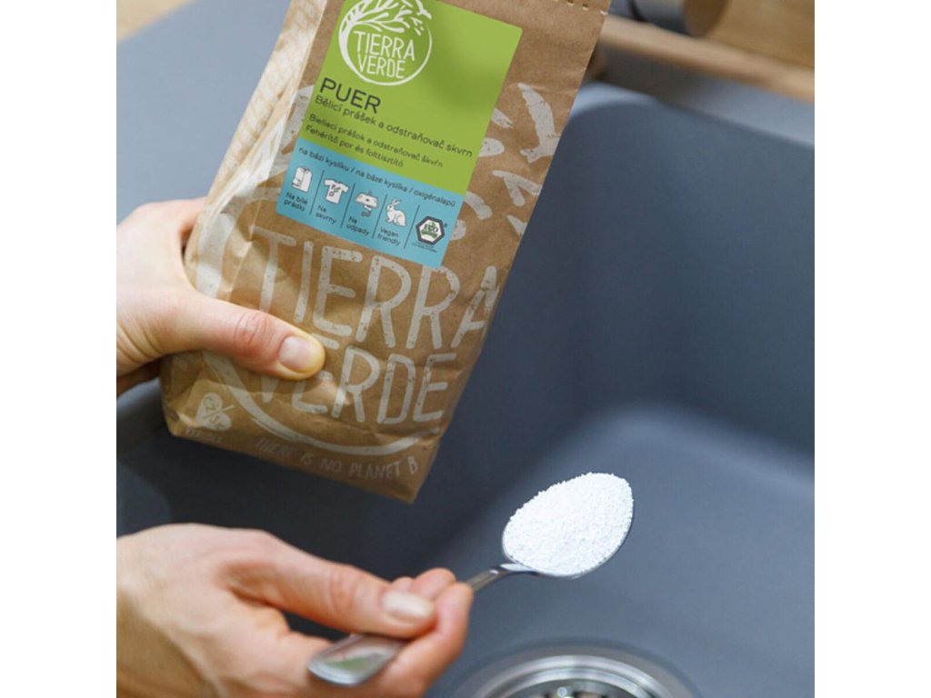 Tento univerzální produkt je skvělý nejen na bělení bílé a stálobarevné prádlo, ale také na namáčení a odstraňování skvrn. PUER lze použít i jako ekologickou alternativu agresivních čisticích prostředků na odtoky, dřezy, vany, umyvadla, sprchy a toalety.
