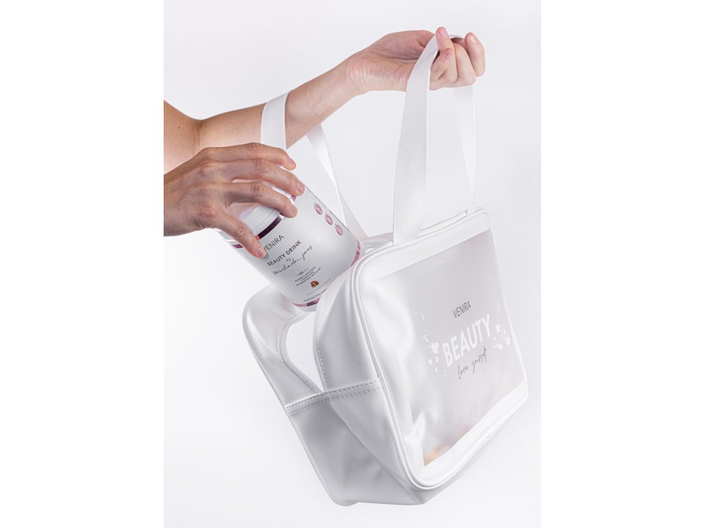 Taška nabízí skvělý přehled díky průhlednému materiálu, který usnadňuje identifikaci obsahu. S rozměry 22 cm na výšku, 31 cm na délku a 12 cm na šířku poskytuje dostatečný prostor pro všechny potřebné produkty. K dispozici jsou dvě elegantní barvy – bílá a pastelově růžová, takže si každý může vybrat podle svého vkusu.