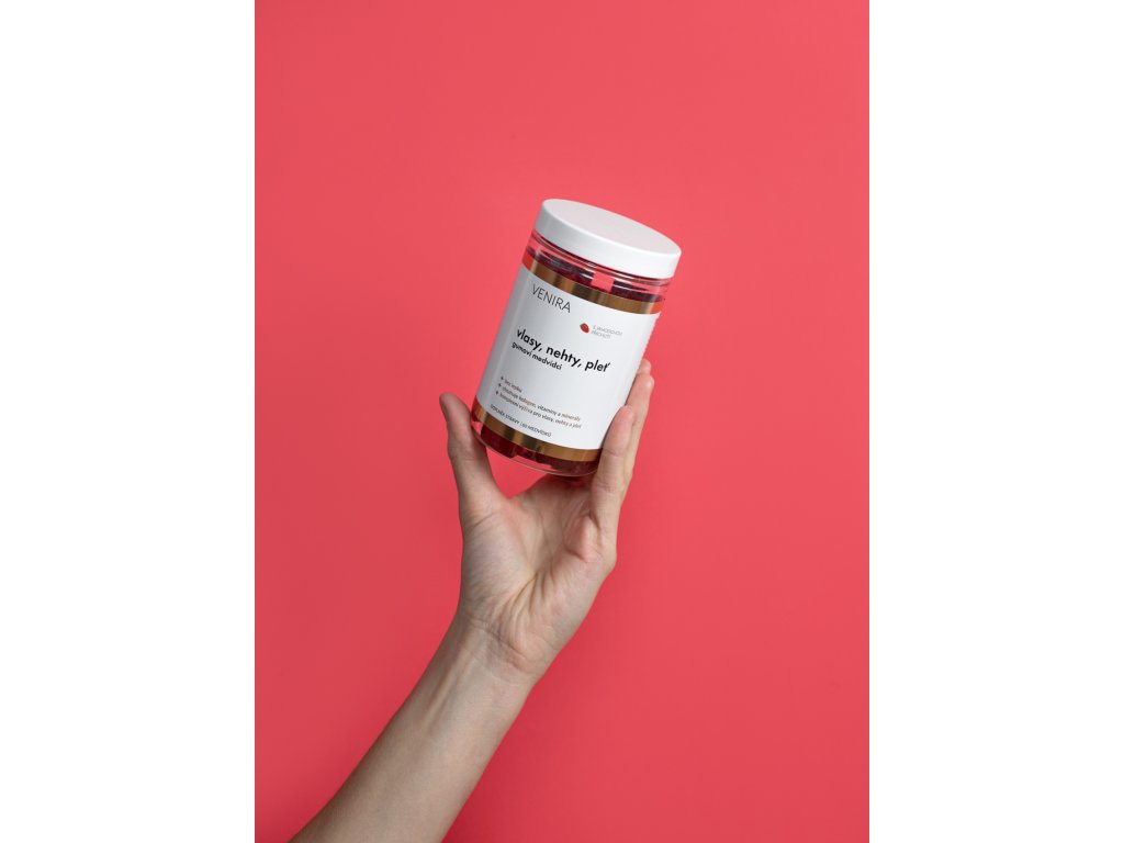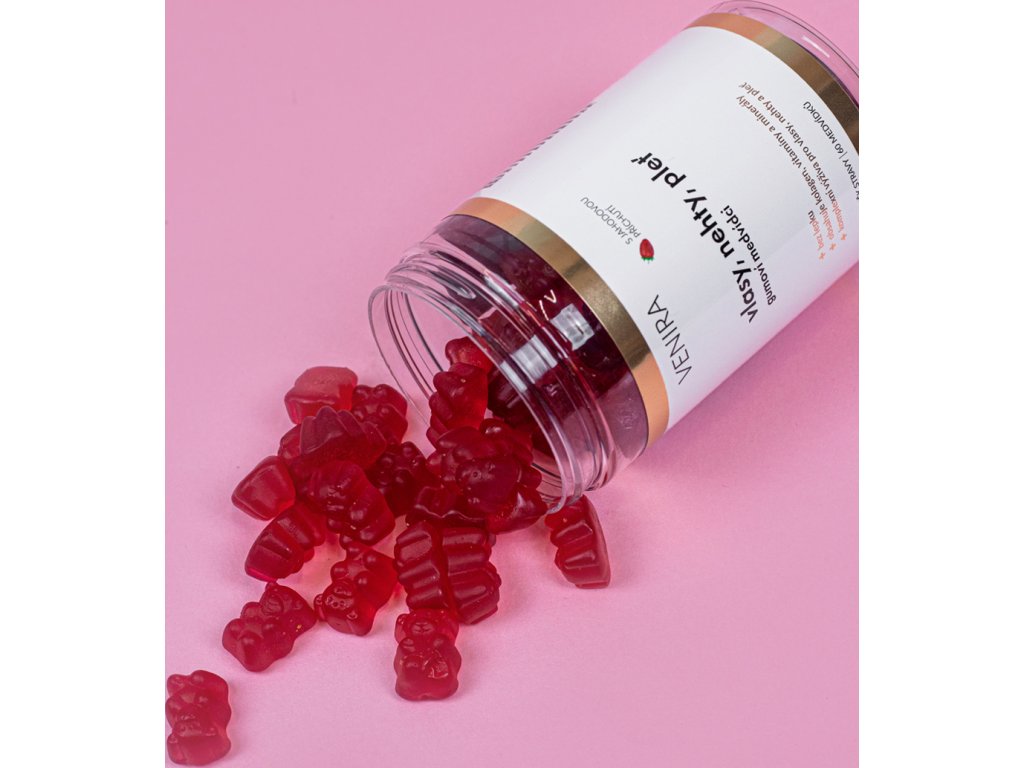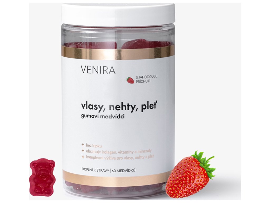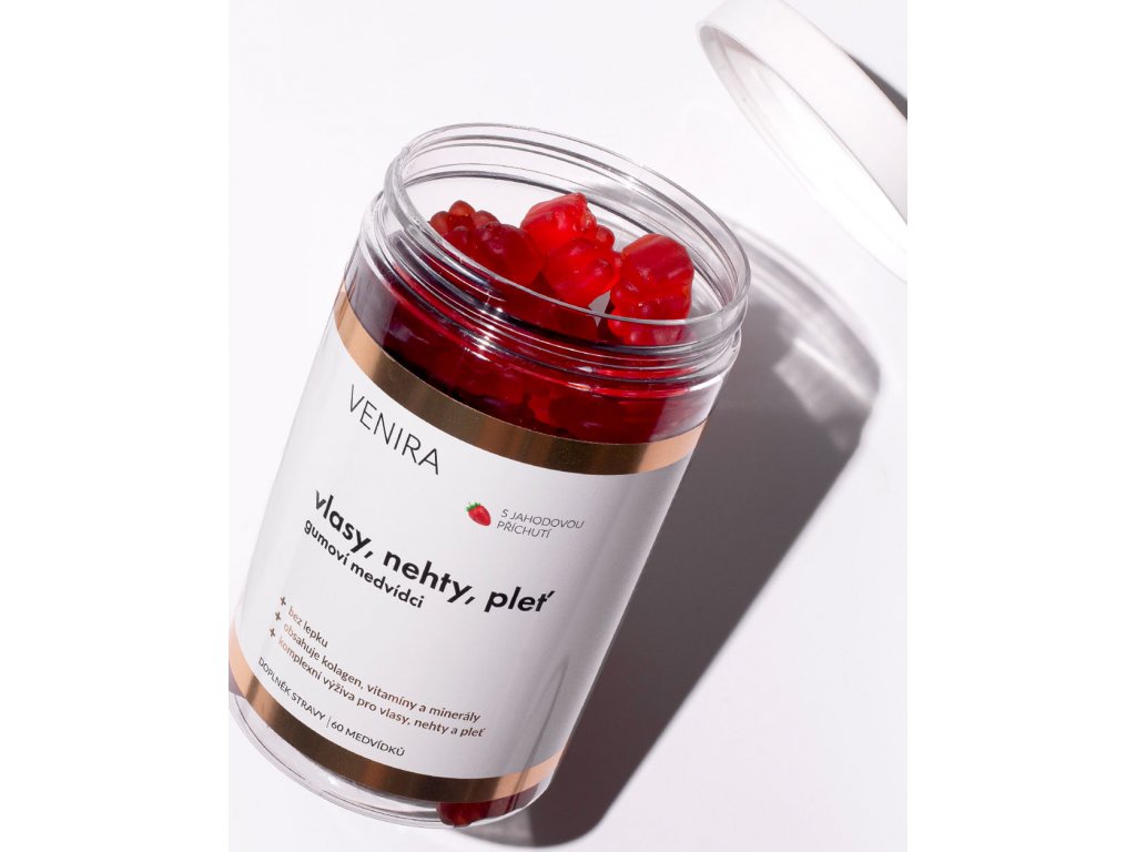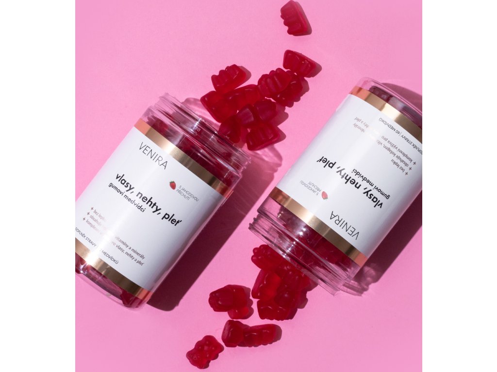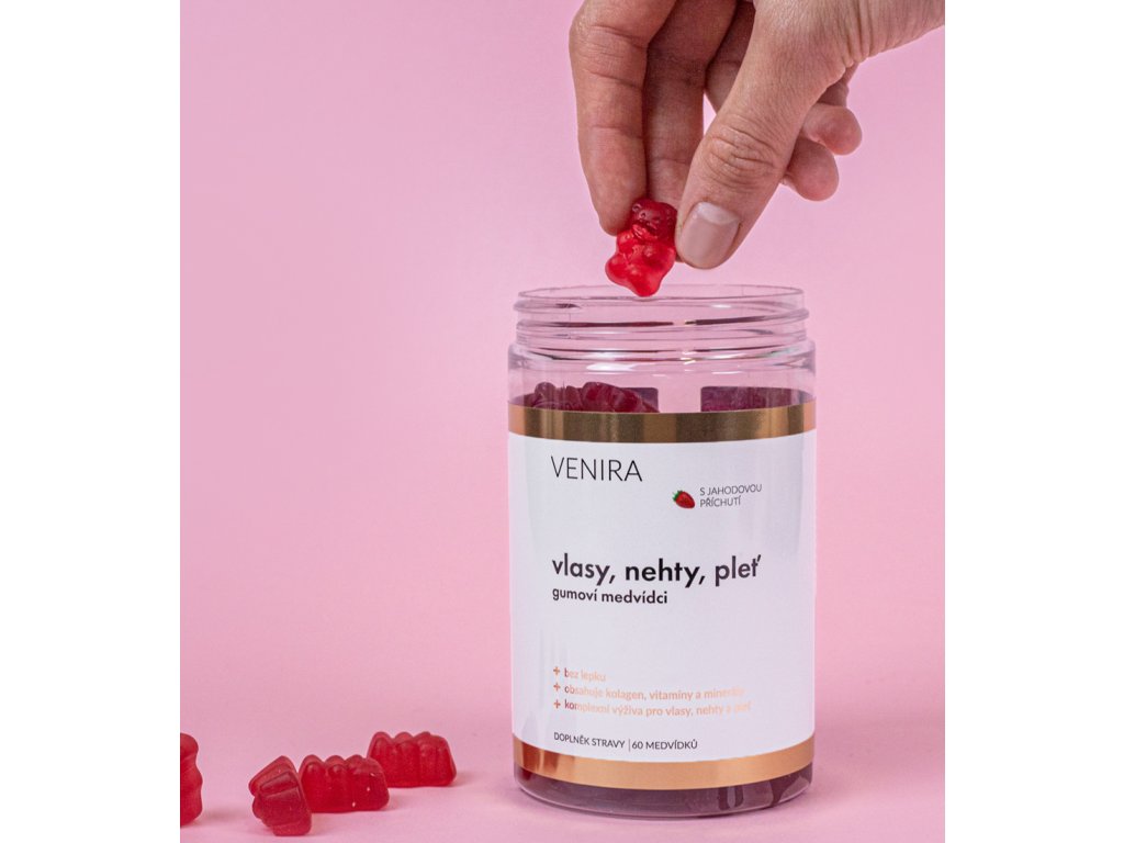 VENIRA gumoví medvídci pro vlasy, nehty a pleť - jahoda, 60 kapslí