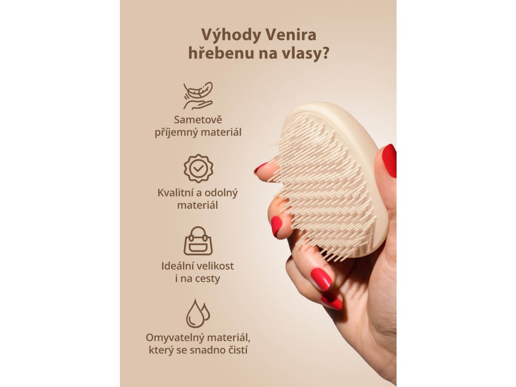 Zapomeňte na nepříjemné tahání a trhání vlasů. S VENIRA hřebenem bude vaše česání rychlé, snadné a šetrné díky dvoustupňovému systému štětin, které se přizpůsobí zacuchaným místům. Lehký a odolný design navíc dělá z tohoto hřebenu ideálního společníka na cesty.