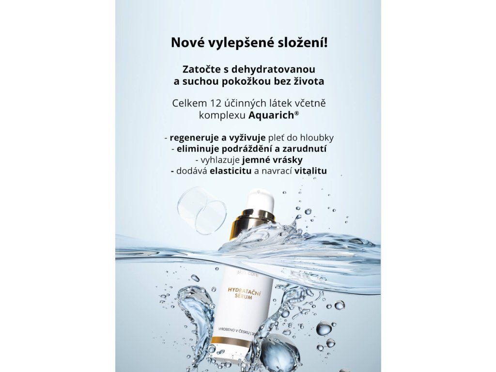 Hydratační sérum jsme obohatili o nové účinné látky pro ještě lepší a rychlejší účinky. Kromě osvědčeného komplexu Aquarich přinášíme nově extrakt z chmele otáčivého, přírodní antioxidant, který chrání pleť před volnými radikály.