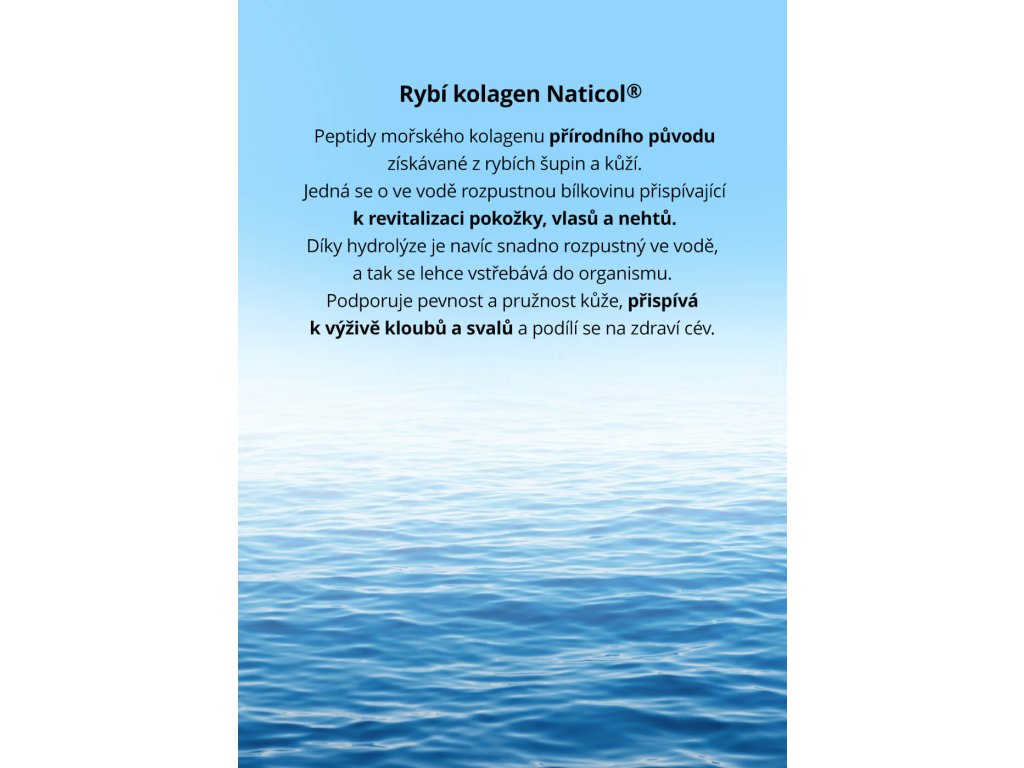- Hydrolyzovaný kolagen (vepřový a rybí - Naticol®) – základní stavební složka kloubů, kostí, pokožky, vlasů a nehtů