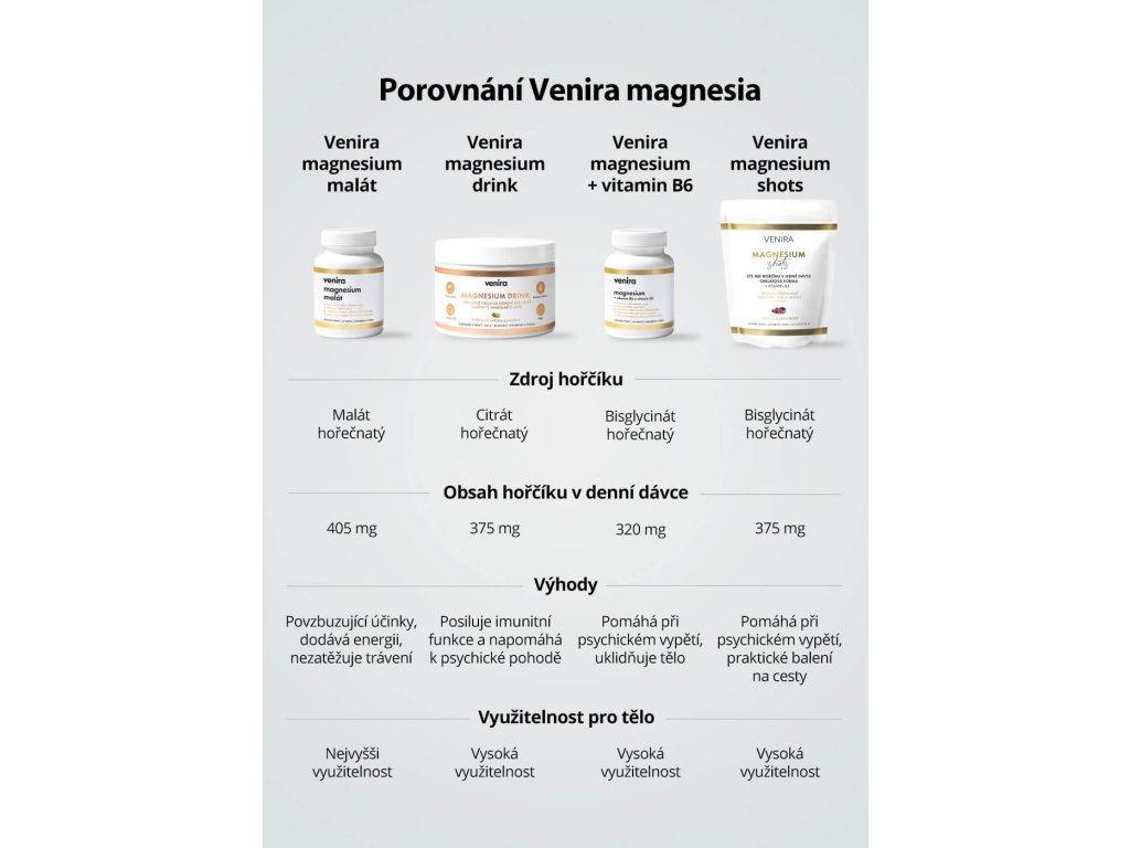 Klíčové výhody VENIRA Magnesium Malát: