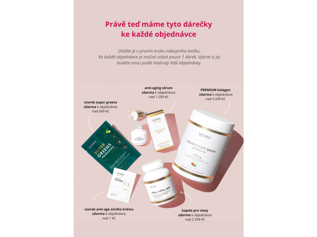 Produkty značky Venira najdete v kategoriích: Zdraví a krása, vitamíny, zažívání a močové cesty, speciálně pro muže a ženy, kolagen, srdce a cholesterol, eco péče o vlasy, eco péče o pleť a eco péče o tělo.