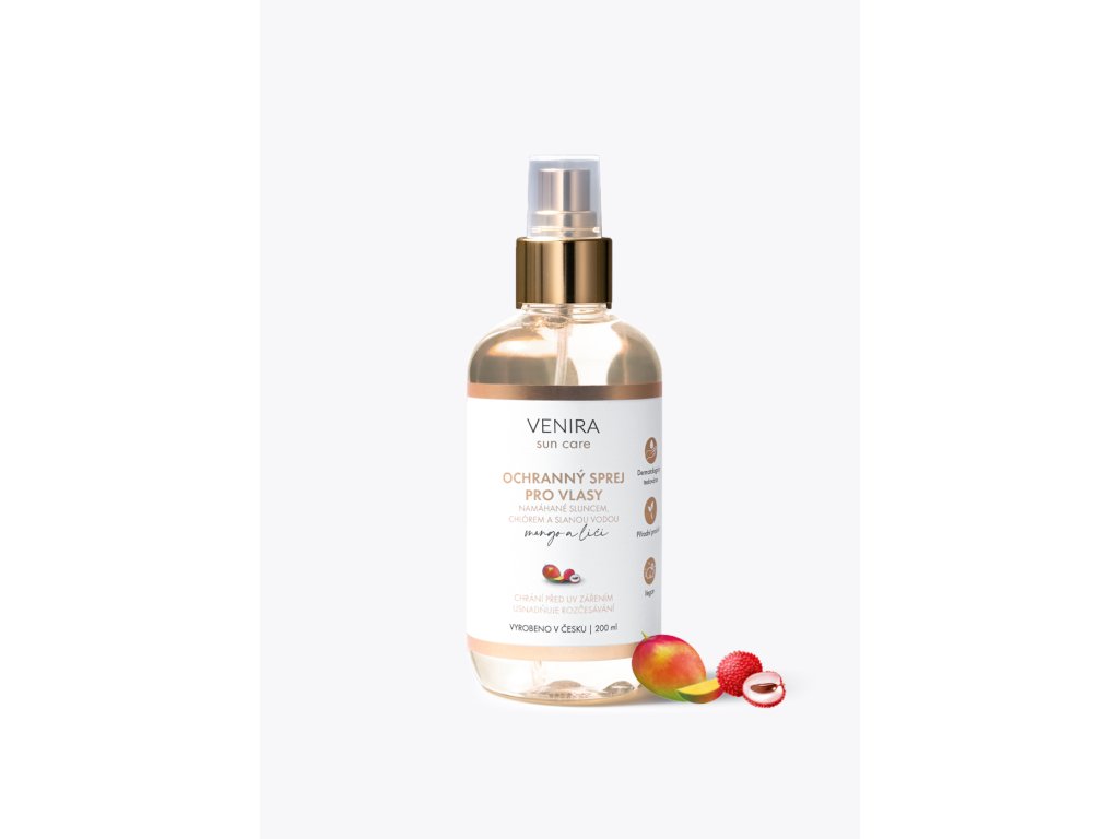 VENIRA ochranný sprej pro vlasy namáhané sluncem, chlórem a slanou vodou- mango-liči, 200ml