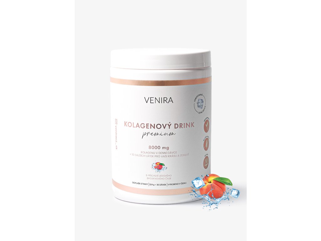 VENIRA PREMIUM kolagenový drink pro vlasy, nehty a pleť - limitovaná letní edice, ledový broskvový čaj, 324 g