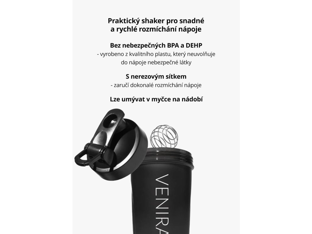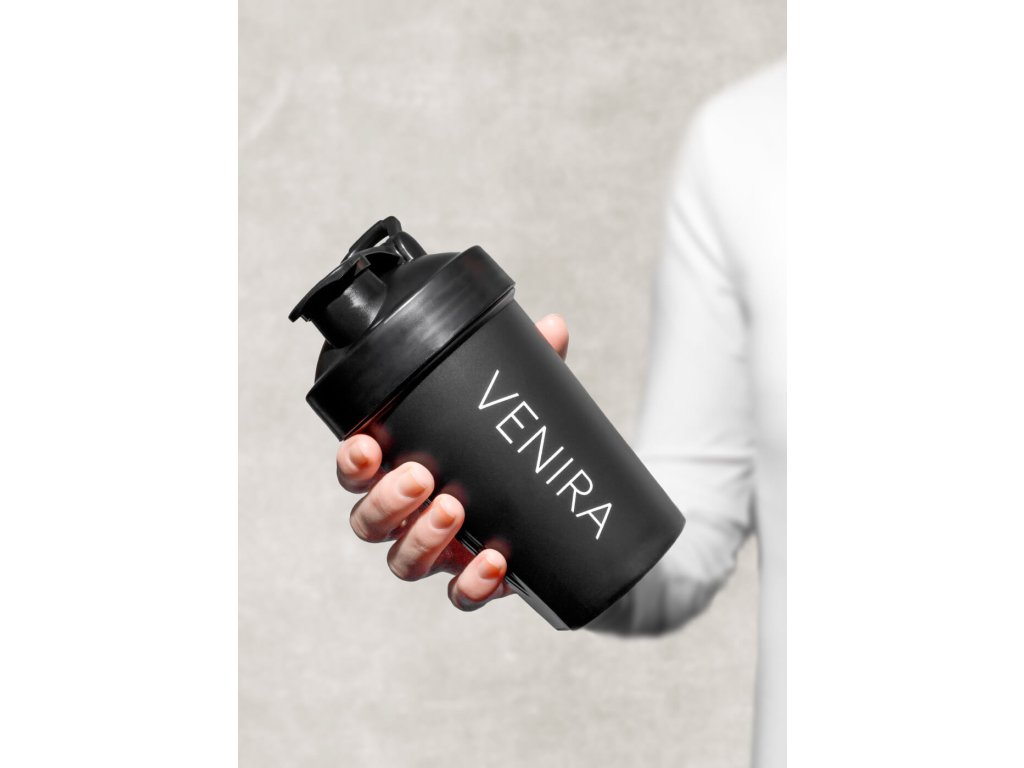 S moderním a minimalistickým designem s logem VENIRA slouží naše shakery nejen k praktickému využití, ale i jako stylový doplněk do fitka. Díky integrované míchací nerezové spirále uvnitř shakeru je zaručena optimální konzistence jakýchkoliv práškových nápojů pro každý doušek bez hrudek a usazenin. Kulatý tvar shakeru umožňuje jeho snadné uchopení, což poskytuje komfortní manipulaci i pohodlnou konzumaci.