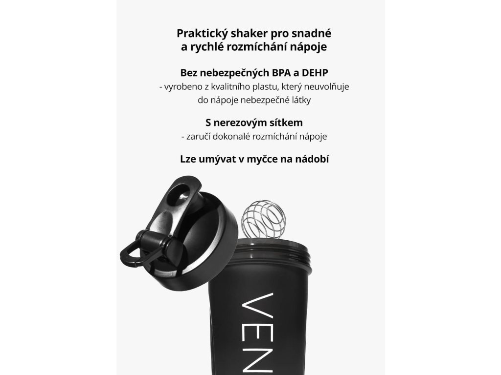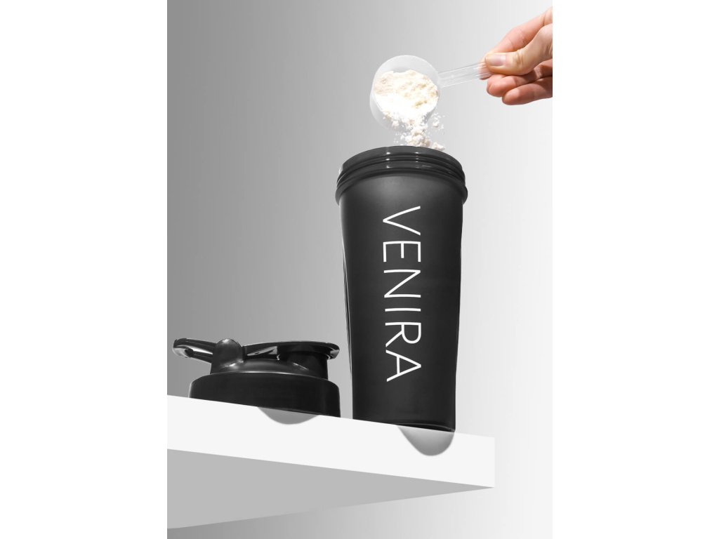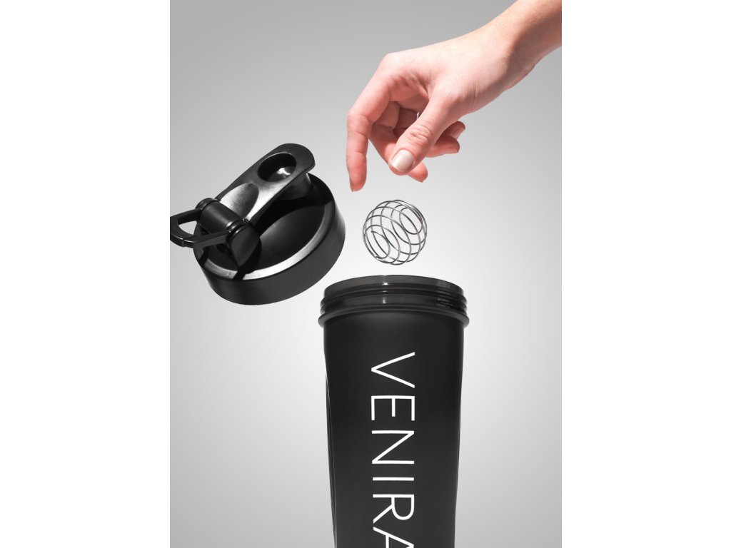 S moderním a minimalistickým designem s logem VENIRA slouží naše shakery nejen k praktickému využití, ale i jako stylový doplněk do fitka. Díky integrované míchací nerezové spirále uvnitř shakeru je zaručena optimální konzistence jakýchkoliv práškových nápojů pro každý doušek bez hrudek a usazenin. Kulatý tvar shakeru umožňuje jeho snadné uchopení, což poskytuje komfortní manipulaci i pohodlnou konzumaci.