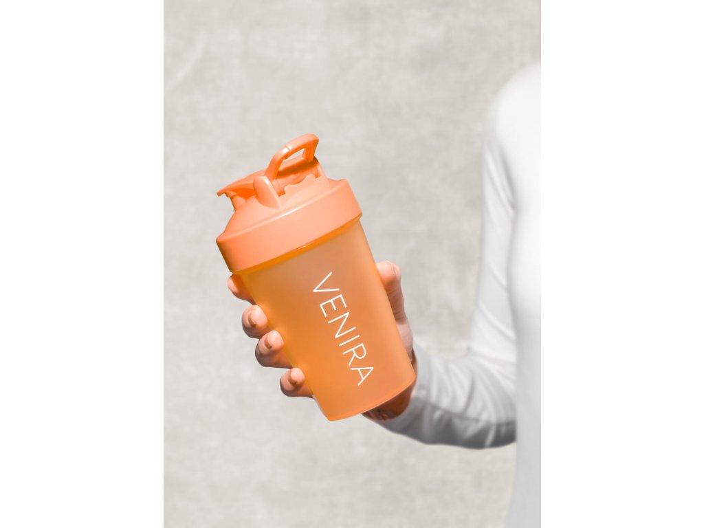 S moderním a minimalistickým designem s logem VENIRA slouží naše shakery nejen k praktickému využití, ale i jako stylový doplněk do fitka. Díky integrované míchací nerezové spirále uvnitř shakeru je zaručena optimální konzistence jakýchkoliv práškových nápojů pro každý doušek bez hrudek a usazenin. Kulatý tvar shakeru umožňuje jeho snadné uchopení, což poskytuje komfortní manipulaci i pohodlnou konzumaci.