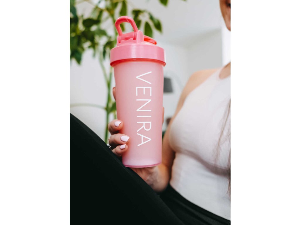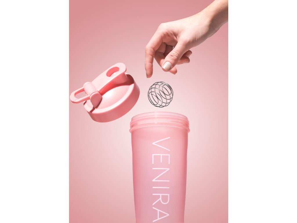 S moderním a minimalistickým designem s logem VENIRA slouží naše shakery nejen k praktickému využití, ale i jako stylový doplněk do fitka. Díky integrované míchací nerezové spirále uvnitř shakeru je zaručena optimální konzistence jakýchkoliv práškových nápojů pro každý doušek bez hrudek a usazenin. Kulatý tvar shakeru umožňuje jeho snadné uchopení, což poskytuje komfortní manipulaci i pohodlnou konzumaci.