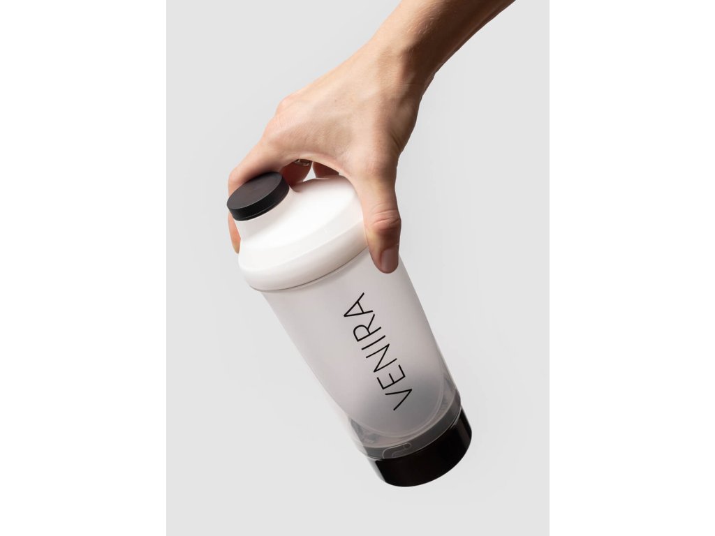 S moderním a minimalistickým designem s logem VENIRA slouží naše shakery nejen k praktickému využití, ale i jako stylový doplněk do fitka. Díky integrované míchací nerezové spirále uvnitř shakeru je zaručena optimální konzistence jakýchkoliv práškových nápojů pro každý doušek bez hrudek a usazenin. Kulatý tvar shakeru umožňuje jeho snadné uchopení, což poskytuje komfortní manipulaci i pohodlnou konzumaci.
