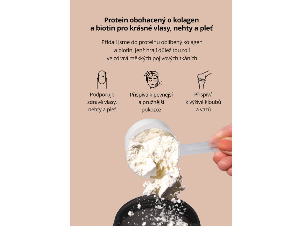 Díky vysokému obsahu bílkovin a aminokyselin včetně BCAA podpoří nejen regeneraci svalů, ale také zdraví pokožky, vlasů a kloubů.
