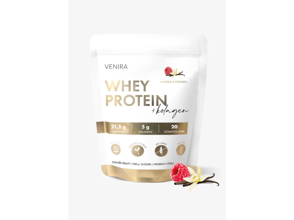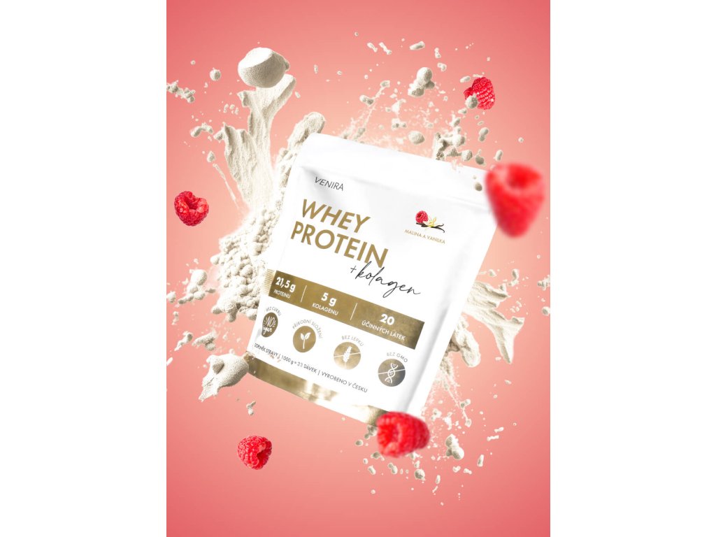 VENIRA beauty whey protein s kolagenem, malina-vanilka, 1000 g