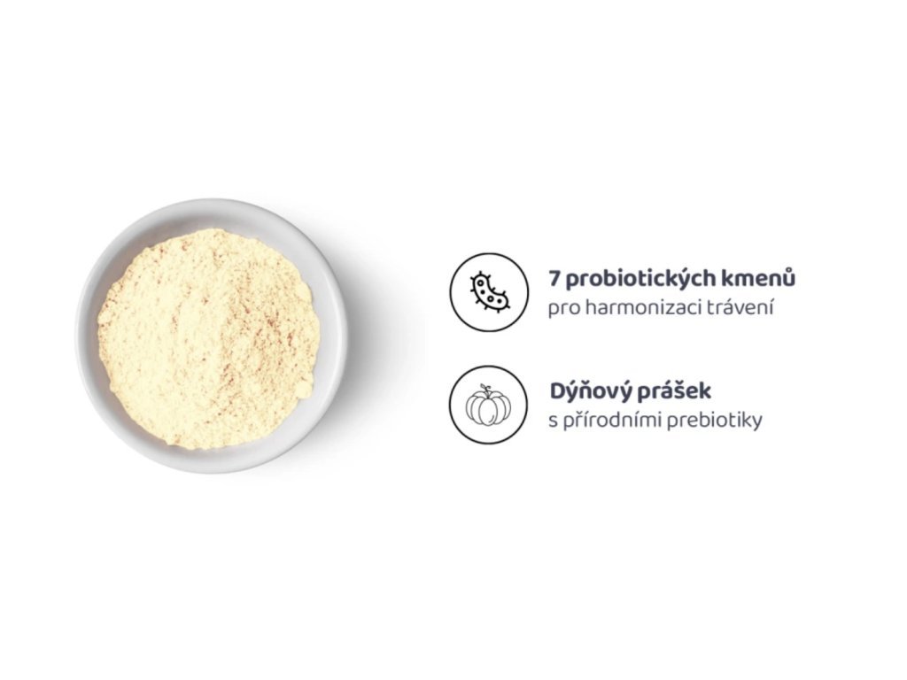 Přírodní prebiotikum z dýně navíc funguje jako výživa pro přátelské bakterie a podporuje celkové trávení i vstřebávání živin.