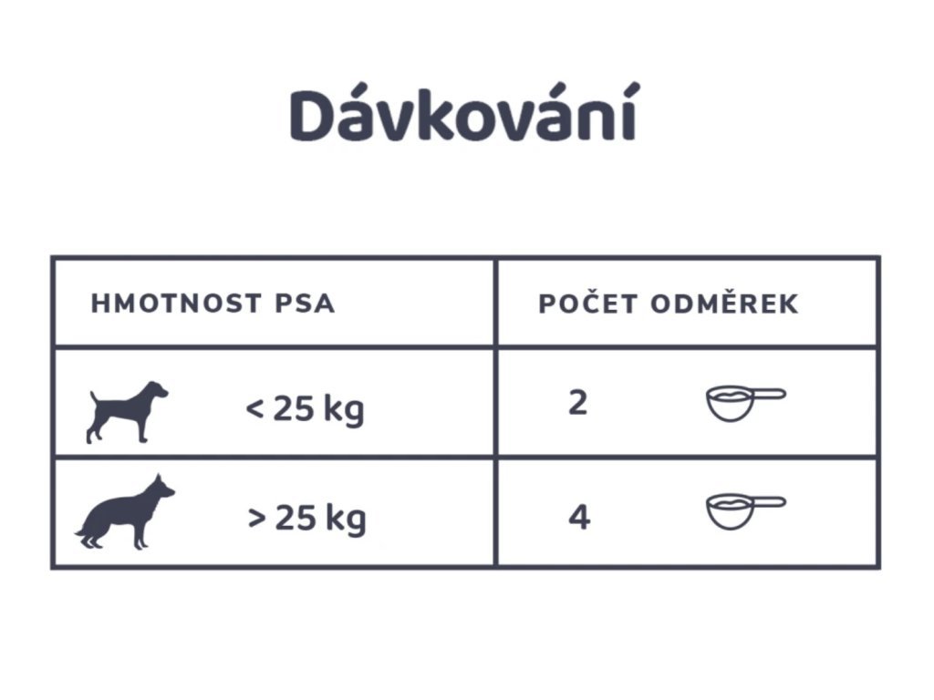 Balení vystačí na více než 1,5 měsíce pro psa do 25 kg.
