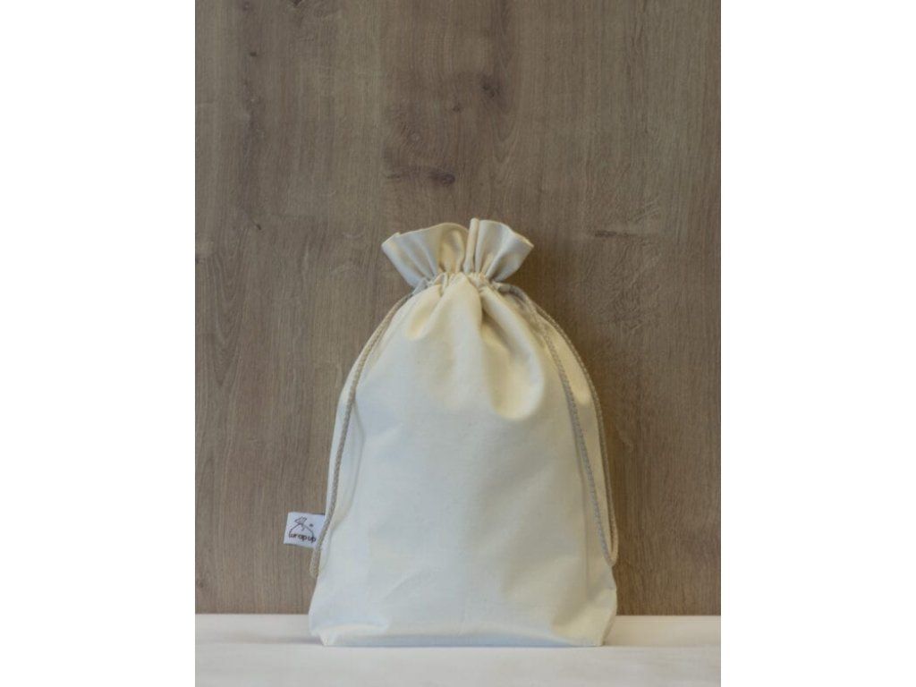Pytlík velikosti střední M (vnitřní rozměr 30 x 24 cm) pro půlku chleba z velkého pecnu, nebo pro menší chlebíky do 900 g a pro chlebík z domácí pekárny.