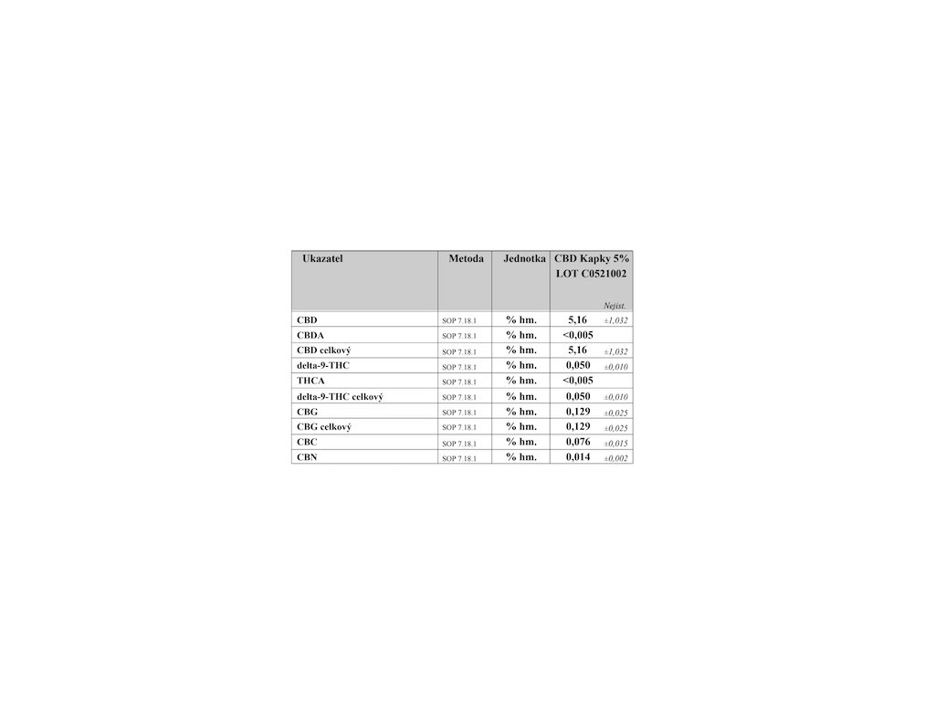 Obsah kanabinoidů: viz. Certifikát o analýze k dané šarži.